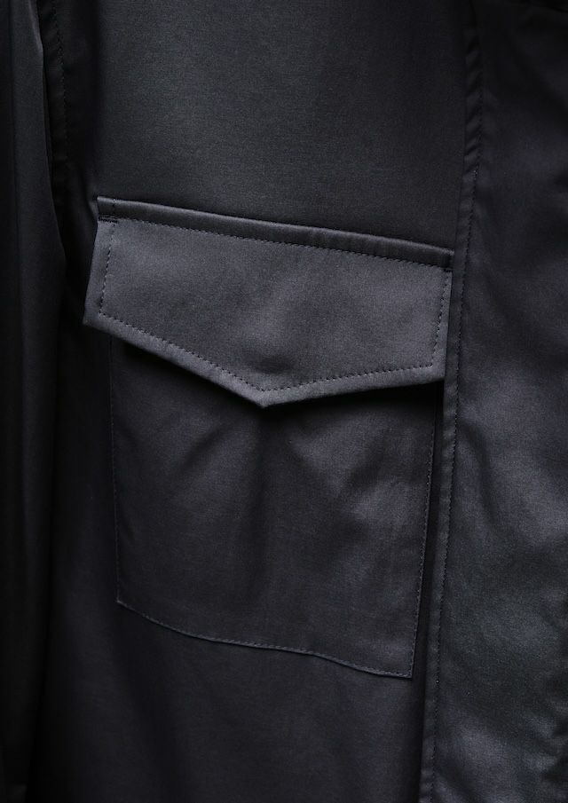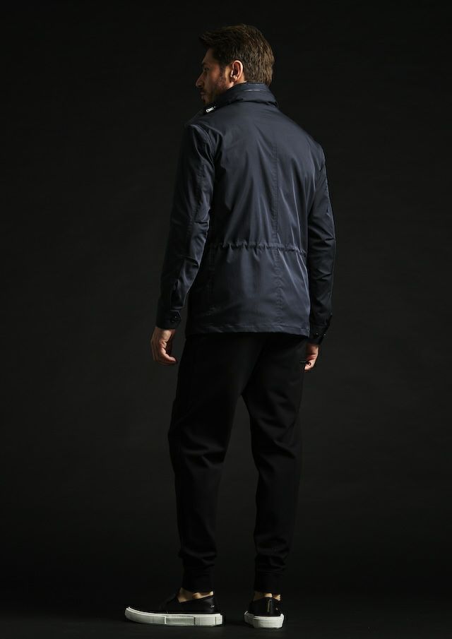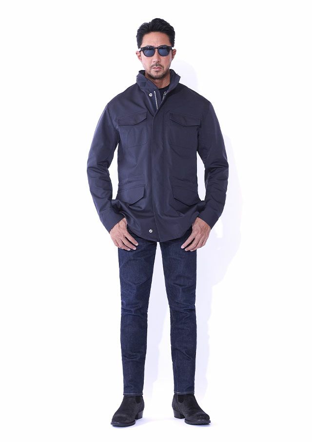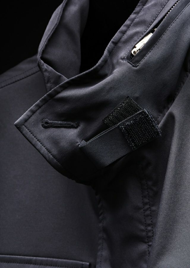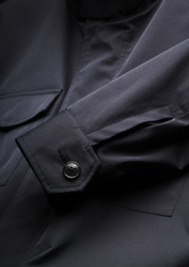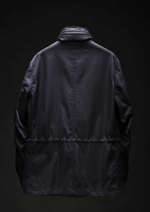 合繊生地メーカーでは世界一と名高いイタリアの老舗ファブリックメーカー「LIMONTA 社」の高機能素材によりモダンかつラグジュアリーにアップデートしました。しなやかでマットな風合い、そしてほどよい肉感(154g/㎡)が特徴で、軽やかさと存在感を絶妙なバランスで両立しています。高密度ハイマルチポリエステル使用により肌触りはとてもソフト。ミリタリーながらも繊細でエレガントな印象。ヨコストレッチ構造により、動きやすくストレスフリーな着用感とフィット感と快適さを両立しています。機能的にも非常に優れており、撥水性、防風性と透湿性を併せ持っており、アウター素材として最適なパフォーマンスを提供します。