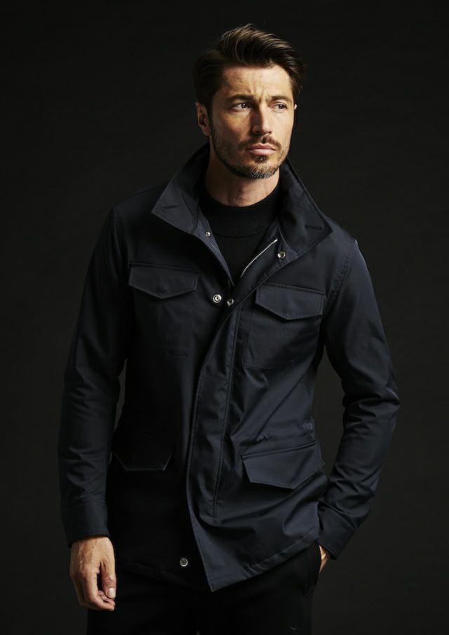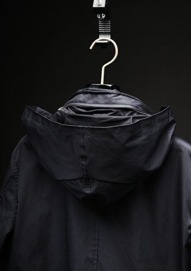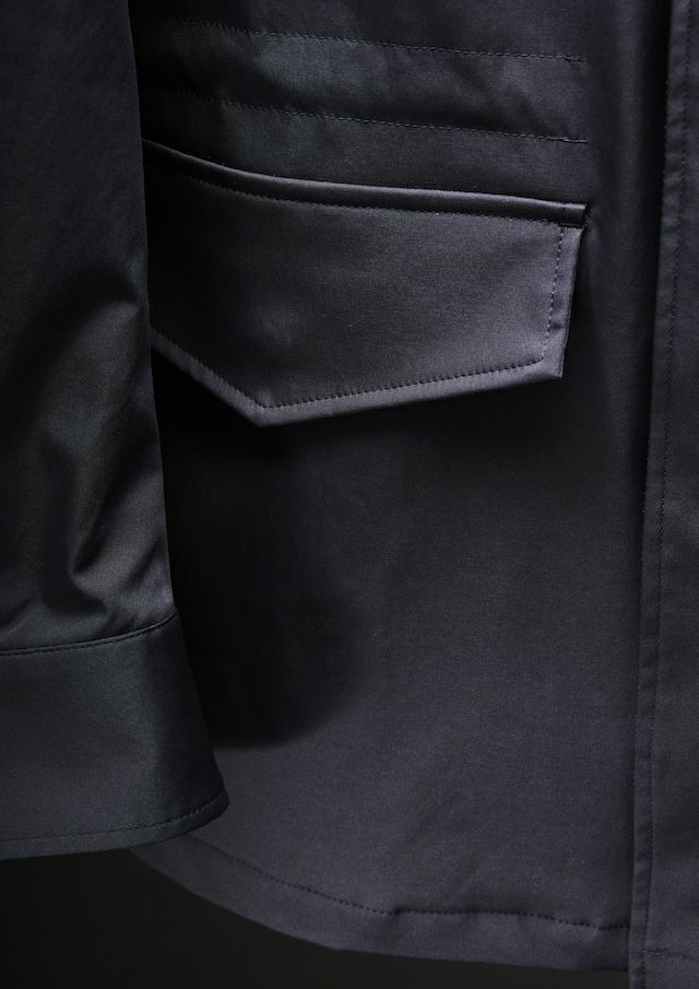 合繊生地メーカーでは世界一と名高いイタリアの老舗ファブリックメーカー「LIMONTA 社」の高機能素材によりモダンかつラグジュアリーにアップデートしました。しなやかでマットな風合い、そしてほどよい肉感(154g/㎡)が特徴で、軽やかさと存在感を絶妙なバランスで両立しています。高密度ハイマルチポリエステル使用により肌触りはとてもソフト。ミリタリーながらも繊細でエレガントな印象。ヨコストレッチ構造により、動きやすくストレスフリーな着用感とフィット感と快適さを両立しています。機能的にも非常に優れており、撥水性、防風性と透湿性を併せ持っており、アウター素材として最適なパフォーマンスを提供します。